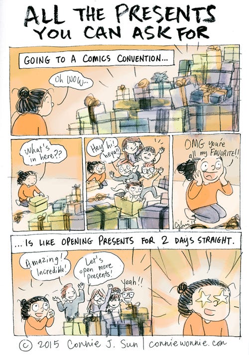 All the Presents You Can Ask ForConnie SunApr 13, 2015ShareHUGE THANK YOU to my awesome friends and all the wonderful people who came out to MoCCA Fest over the weekend. Can't ask for better presents in life :)Much love to you all -'til next time!