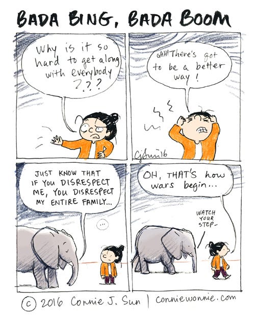 Bada Bing, Bada BoomConnie SunOct 04, 2016ShareEven with the best of intentions --(Conflict escalation elephant)