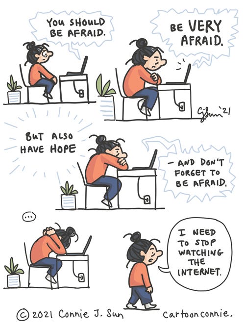 New sketchbook cartoon about how the internet keeps feeding us endless reasons to be afraid. I should probably start watching my internet diet.