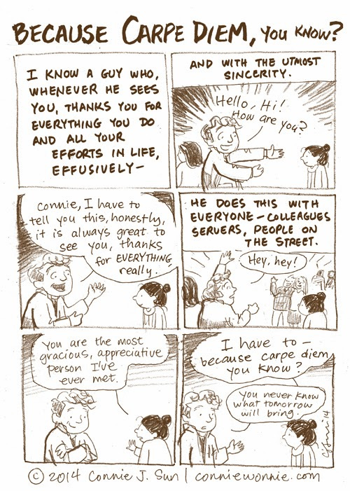 Because Carpe DiemConnie SunFeb 19, 2014ShareI had to cartoon this. Thanks for everything you do, really.