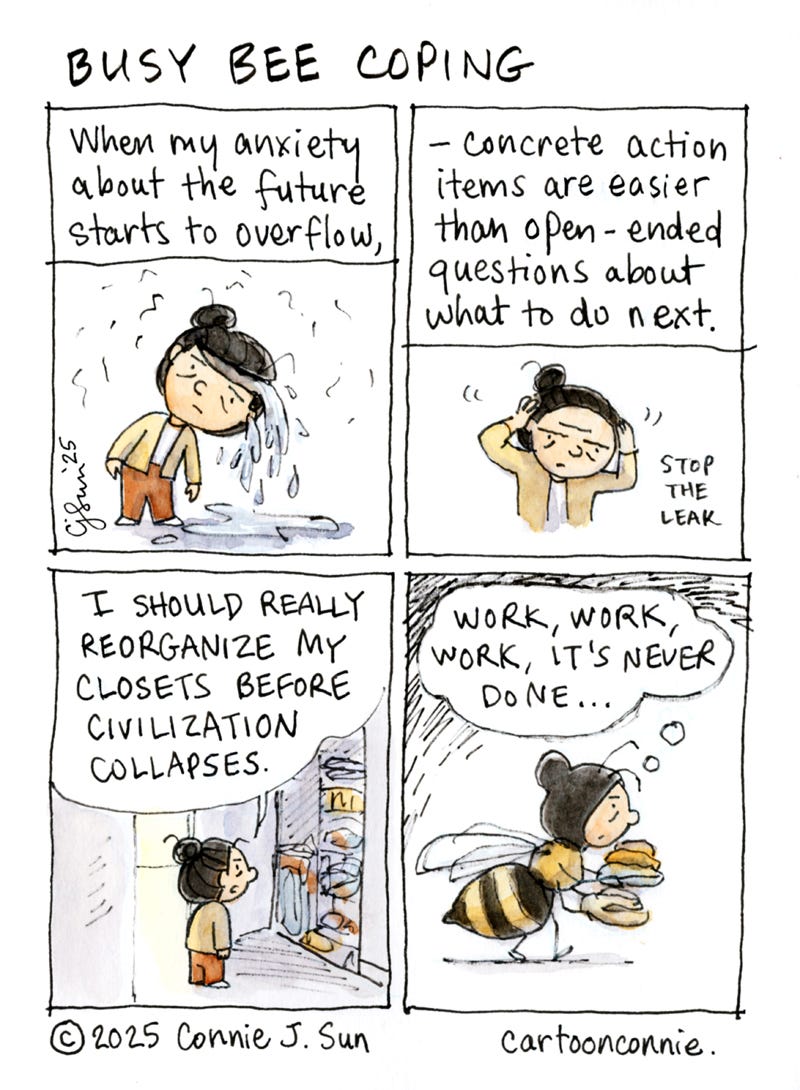 I've been working nonstop lately and it occurred to me that this might be how I'm coping with anxiety about change and future uncertainty.