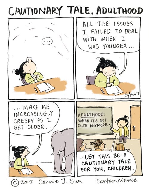 Cautionary Tale, AdulthoodConnie SunOct 02, 2018ShareLet adulthood be a cautionary tale to you, children. ;)