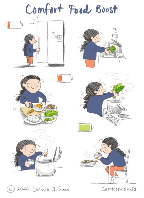 Comfort Food BoostConnie SunMay 01, 2020ShareLess pain, more comfort today.Hope you make something yummy for dinner too.