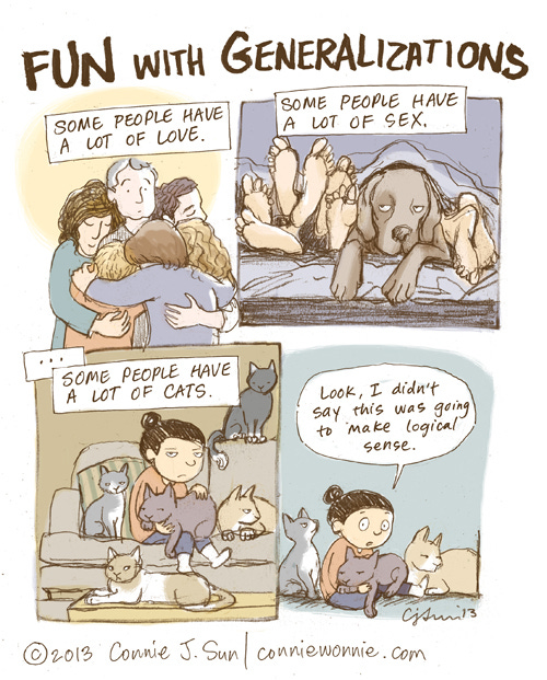 Fun with GeneralizationsConnie SunMay 10, 2013ShareStill sick. But hooray for the end of the week.Let it be known that I don't have cats. Strictly hypothetical.