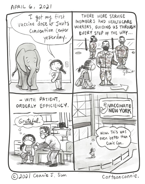 I was lucky enough to get a first-dose vaccine appointment yesterday at the Javits Center. After a year of living through a global pandemic and all that it brought, a lot of feelings raced through my mind as I made my way to get vaccinated.