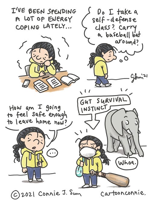 New sketchbook cartoon about survival instinct, trauma, coping, and wanting to feel safe. I think our instincts for survival are closely linked with how we experience trauma.