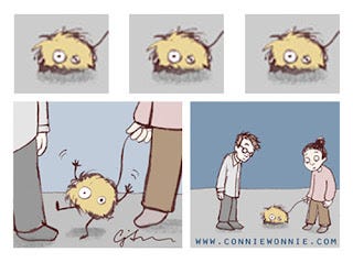 Hit with a Virus!Connie SunJun 21, 2012ShareOh no! My trusty Mac is sick with a nasty virus. Cartooning on hold until further notice. Below: Remixed comic. This is what I think computer viruses look like. Tricky, maniacal little buggers.