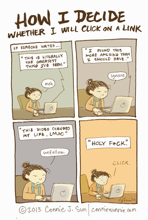 How I Decide Whether I Will ClickConnie SunAug 14, 2013ShareThe internet has made me an unapologetic asshole.
