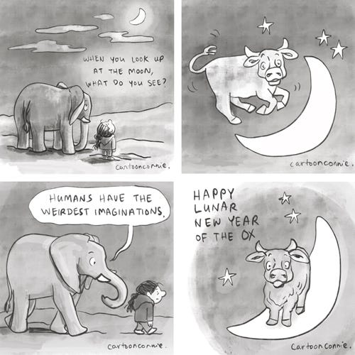 Ox over the moon for Lunar new year. I wonder why elephants aren't a zodiac animal.