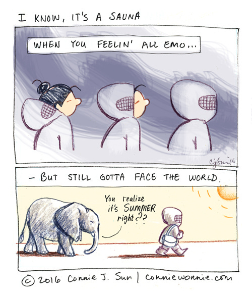 I Know, It's a SaunaConnie SunJun 02, 2016ShareWhen you're feeling all emo, but still gotta face the world - inner strength sauna.