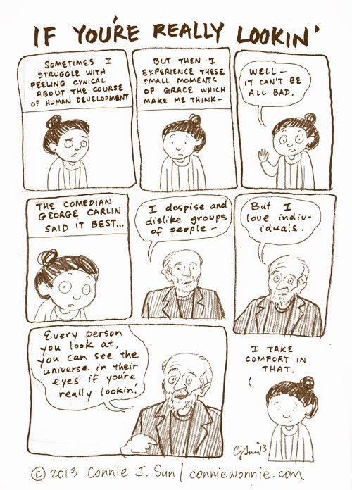 If You're Really Lookin'Connie SunJul 08, 2013Share"Every person you look at, you can see the universe in their eyes if you're really lookin'." - George Carlin, interviewed by Jon Stewart.
