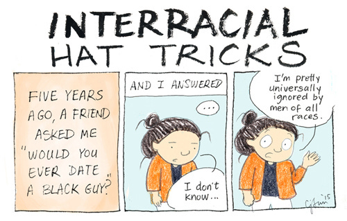 Interracial Hat TricksConnie SunAug 20, 2015ShareI have a new old maid column up on McSweeney's this week! You can read #15 here (x) and check out the rest of the series here (x).Here's an excerpt - let me know what you think!