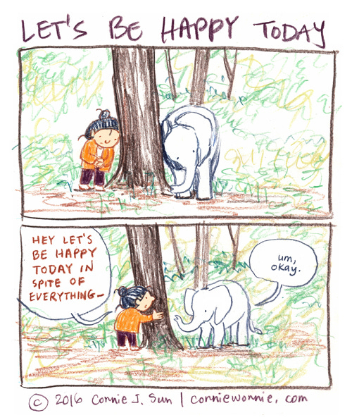 Let's be happy today in spite of everything.
