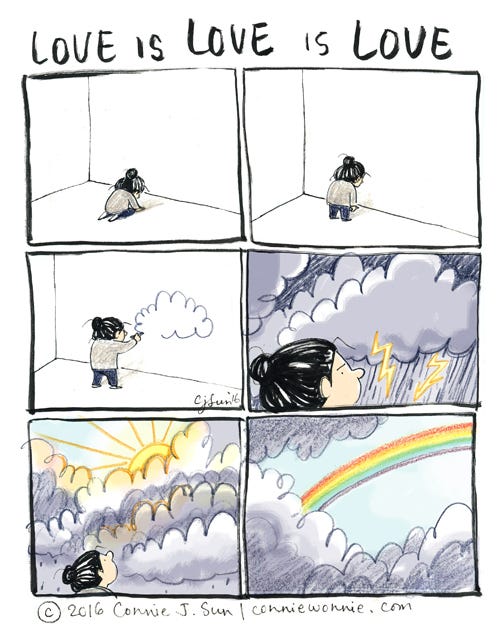 "Love is love is love...cannot be killed or swept aside. / I sing Vanessa's symphony; Eliza tells her story. / Now fill the world with music, love, and pride."