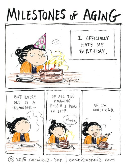 Milestones of AgingConnie SunOct 13, 2015ShareSpecial thanks to my long-suffering friends & family & coworkers :)