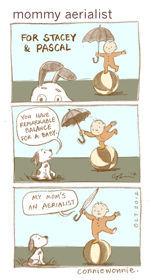 Mommy AerialistConnie SunOct 29, 2012ShareThis one is for my friends Stacey and Pascal in South Africa -- who are due any minute now! Judging from the parents, I imagine the baby will have a few tricks up its sleeves :)