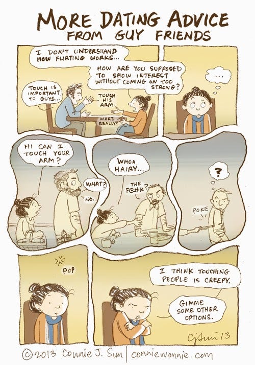 More Dating AdviceConnie SunJun 21, 2013Share...from guy friends. In case you missed it, here is some earlier advice I got. Happy Friday!