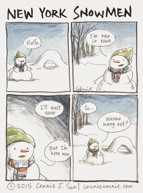 New York SnowmenConnie SunJan 29, 2015ShareThis is the most existential comic about dating in New York that I've done.