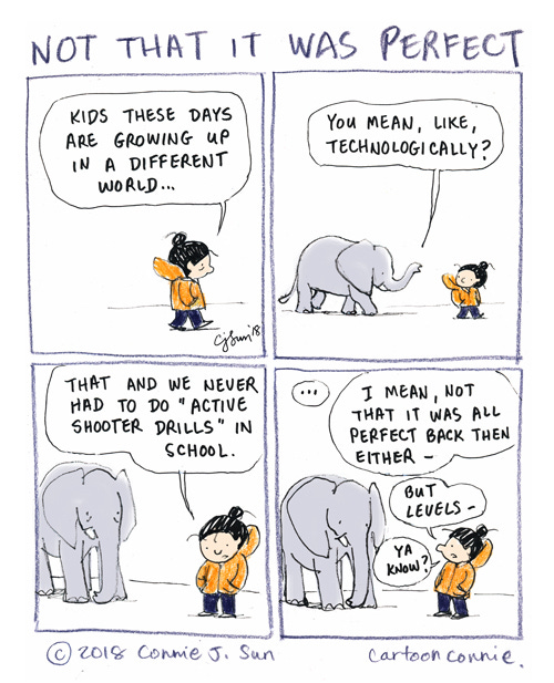 Not That It Was PerfectConnie SunFeb 19, 2018ShareBut - levels. We didn't have to do "active shooter drills."