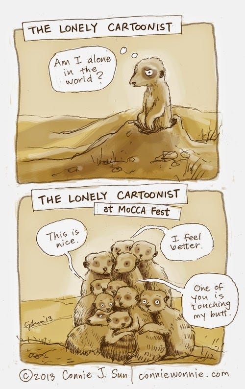 Okay I'm Gonna TryConnie SunApr 04, 2014ShareIt's this weekend! It's in NYC! It's going to be SO MANY CARTOONISTS in one place!