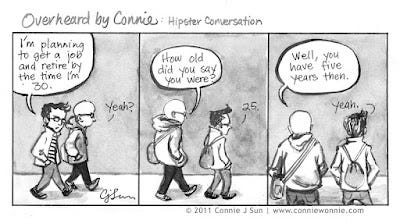 Overheard by Connie #3Connie SunDec 07, 2011ShareOhhh yeeaah...I remember being 25. Hipsters hadn't been invented yet.