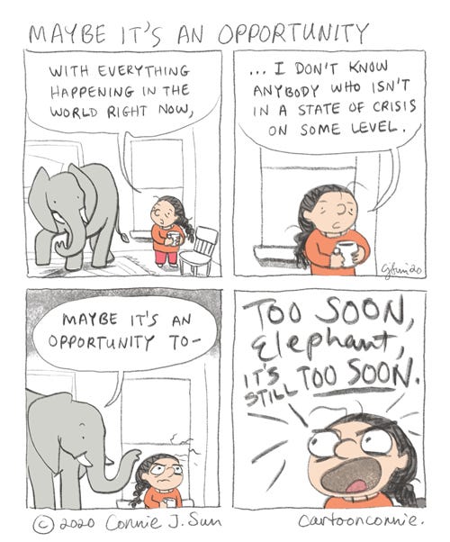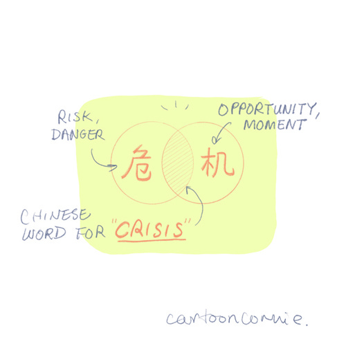The Chinese term for "crisis" is a combination of the characters risk + opportunity.