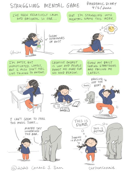 I've been trying different coping strategies, but I find I need to keep adjusting them day by day.