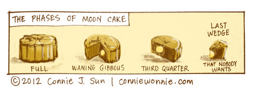 Yesterday was Mid-Autumn Festival, a Chinese lunar harvest holiday, when families gather and feast and celebrate the season. Traditionally, moon cakes (a rich pastry made of lotus or red bean paste, often containing a salted duck yolk) are gifted and eaten with tea during this occasion. If you celebrate, hope you had a very happy 中秋節.