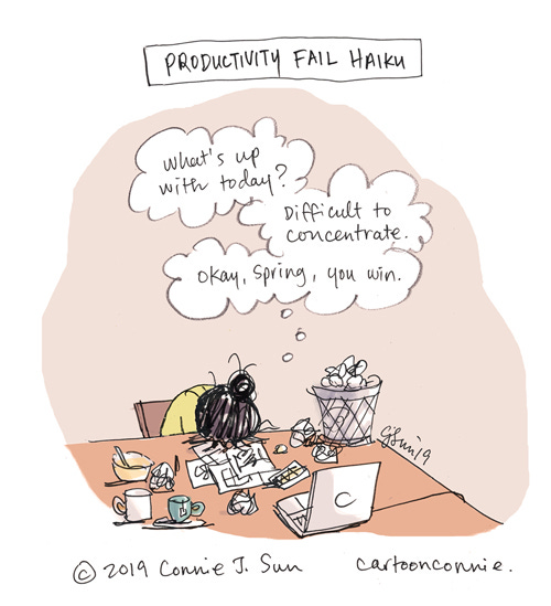 Productivity Fail HaikuConnie SunMar 21, 2019ShareAfter multiple failed drafts and attempts to be productive, I finally gave up on an idea and wrote a haiku instead.