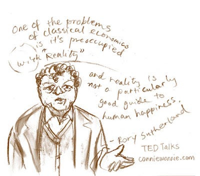 Working on a longer cartoon. In the meantime, here's a sketch drawn from Rory Sutherland's TED talk on happiness and perspective.