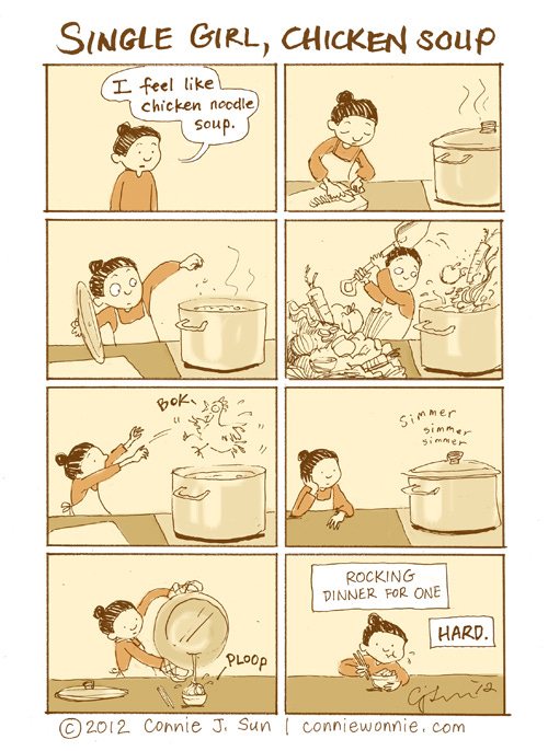 Single Girl, Chicken SoupConnie SunOct 09, 2012ShareI always feel funny making dinner, but I must say, I've got single-servings down pat.