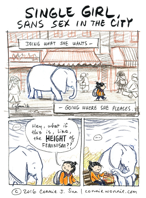 Single Girl, Sans Sex in the CityConnie SunMay 06, 2016ShareMaybe this is the height of feminism. Food for thought ;)