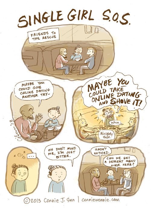 Single Girl S.O.S.Connie SunJan 07, 2013ShareFor my friends, who always know just what to do in a crisis situation :)