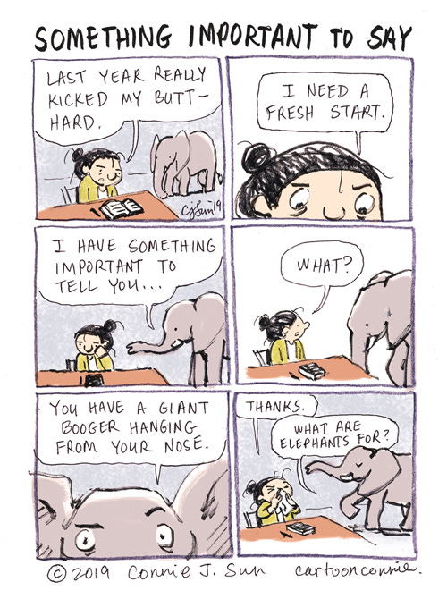 Something Important to SayConnie SunJan 08, 2019ShareHappy new year! Fresh start - and first cartoon of 2019.May the months ahead bring strength and inspiration :)