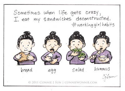 A Status Message a Day #37Connie SunOct 27, 2011ShareWhen life gets crazy, I eat my sandwiches funny. #workinggirlhabits