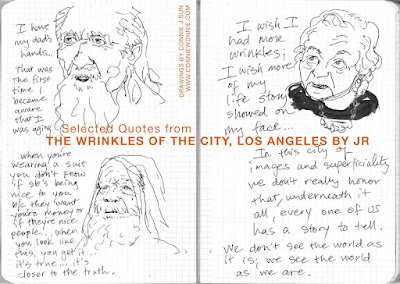 I ran out of time to compose a new cartoon, so here's a page from my sketchbook -- inspired by the artist JR's project, Wrinkles of the City, Los Angeles edition. You can watch it here on HuffPo (approx. 12 minutes). I grew up in a sleepy suburb of L.A. and this makes me see the place with new eyes.