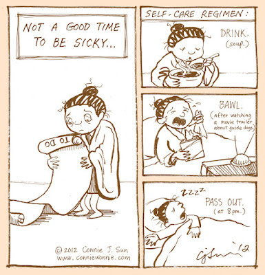 A Status Message a Day #88Connie SunApr 30, 2012ShareNever a good time to be under the weather...Does anyone else get emotional when sick too? Or just me?