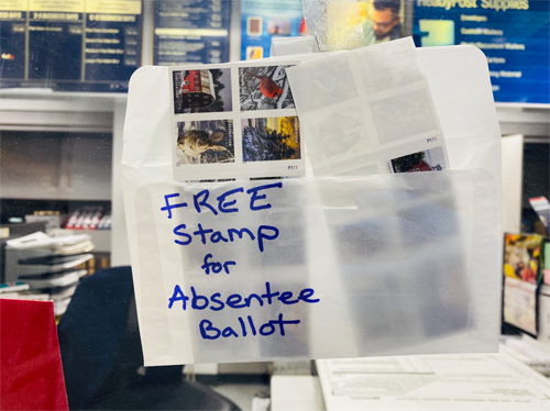 When I walked into my local post office for stamps, I learned that people in the neighborhood have been buying postage for absentee ballots.