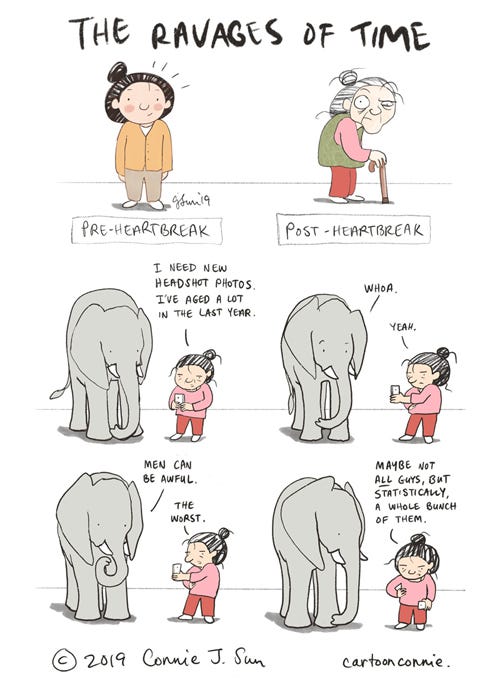 The Ravages of TimeConnie SunSep 11, 2019SharePre- and post-heartbreak self. Gonna need new headshot photos.