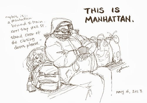 This is ManhattanConnie SunMay 22, 2013ShareNo cartoon today. Sharing a page from my sketchbook. Seen on the 2 train.