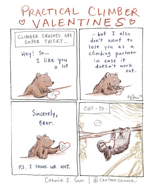 Here are 2 new installments for Valentine's Day: Climber Crushes #7 and Practical Climber Valentines #8