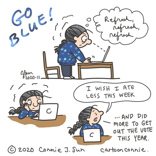 Caption: "I wish I ate less this week and did more to get out the vote this year."