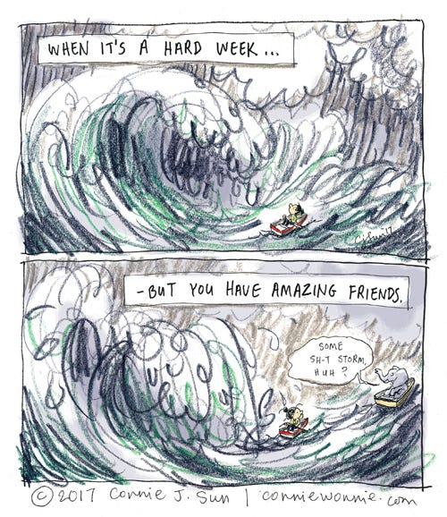 When It's a Hard WeekConnie SunApr 06, 2017ShareWhen your friends are amazing, you can ride out any sh-t storm.