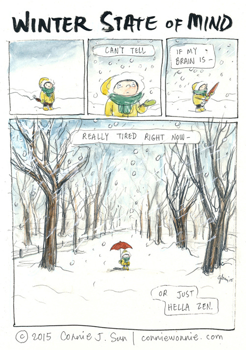 Winter State of MindConnie SunFeb 03, 2015ShareWinter coma or hella zen?- - - - - - - - - -(Update: New McSweeney's old maid column up today!)