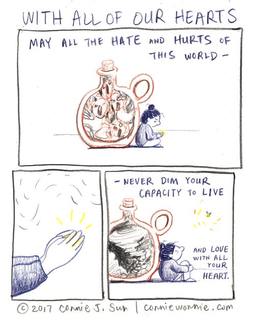 With All of Our HeartsConnie SunJun 19, 2017ShareMay all the hate and hurts of this world never dim your spirit.