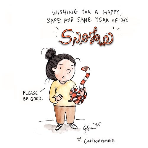 Another Lunar New Year cycle begins on January 29th, ushering in the Year of the Snake. Though it promises to be wild, may you stay safe and sane through it. No matter what, I hope your days are blessed. - Connie