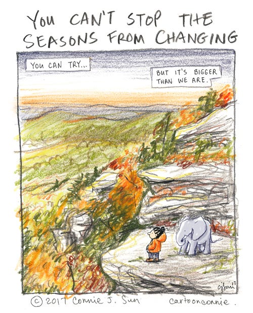 You Can't Stop the Seasons from ChangingConnie SunOct 04, 2017ShareProgress, either. It's bigger than we are.
